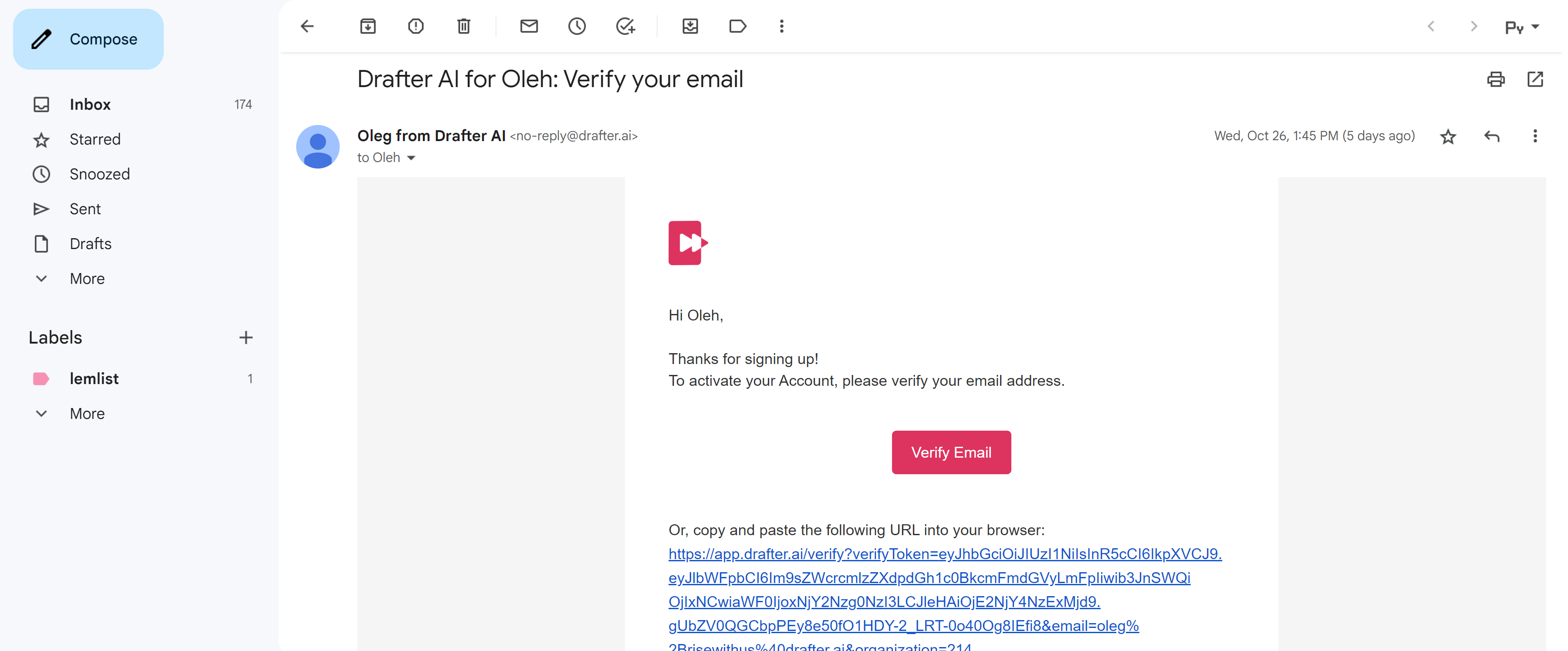 After proceeding by verification link, your instance of Drafter AI starts to deploy.