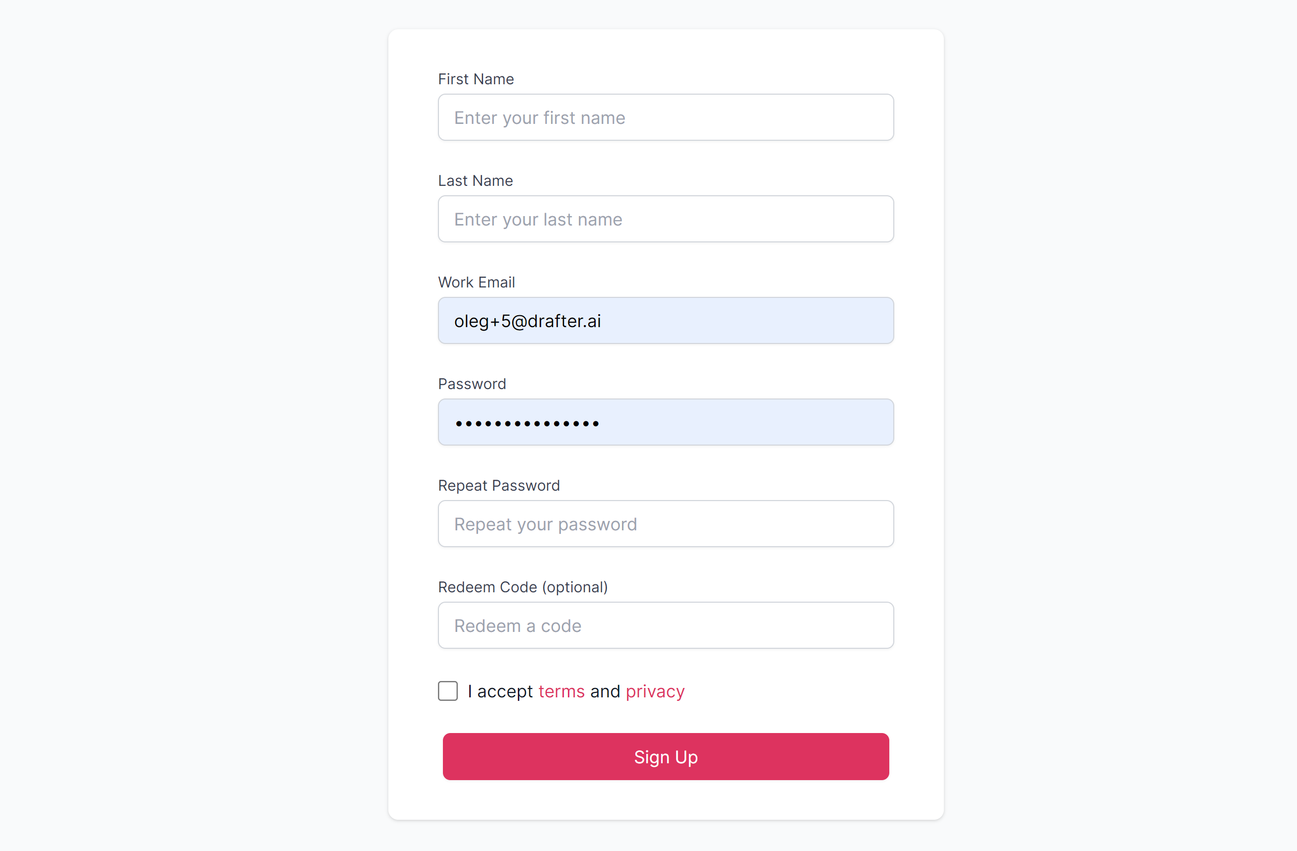 Fill in a short form to sign up for Drafter AI.