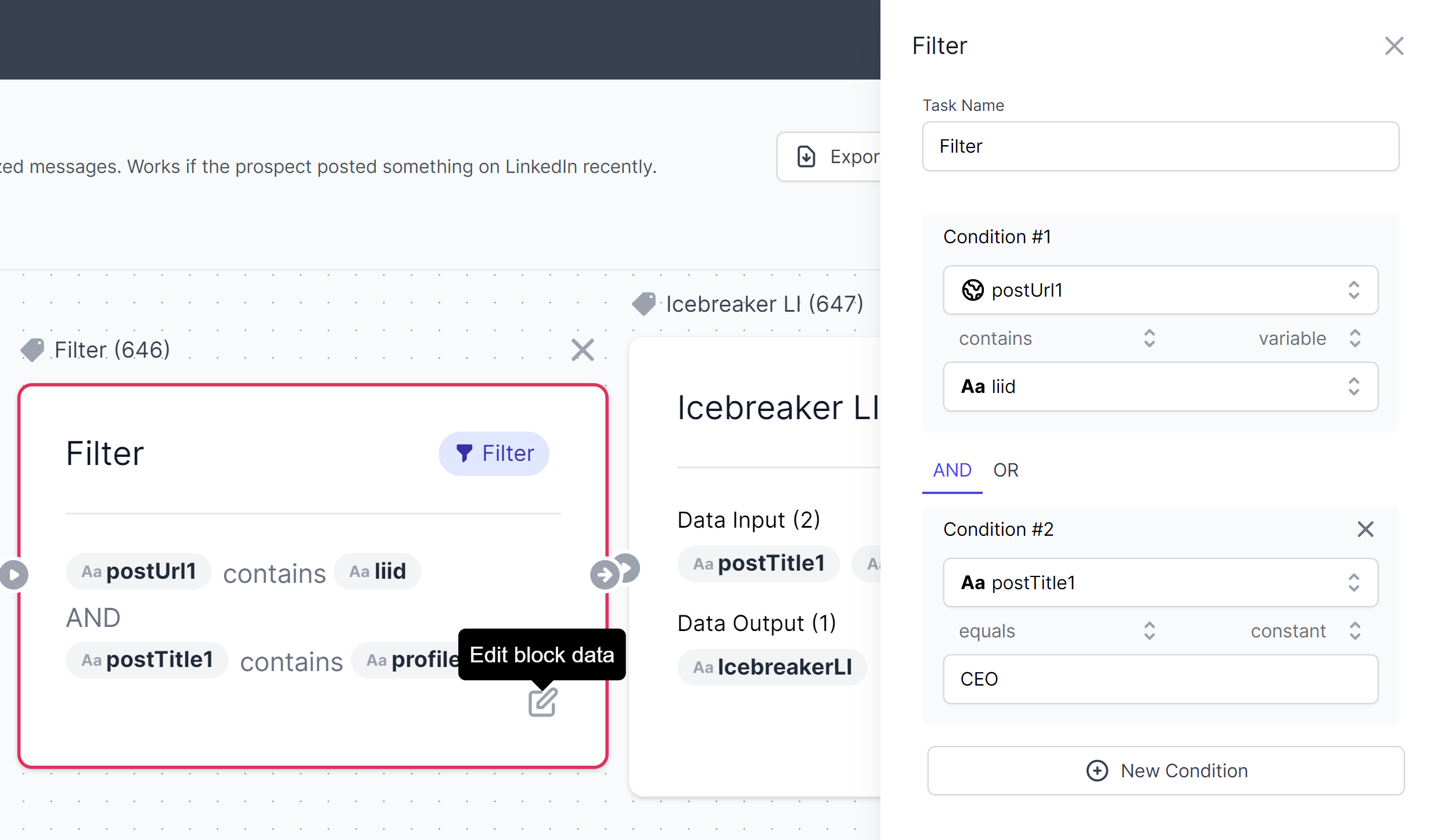 To add a new filter condition, click the <mark style="background-color:blue;">**“New Condition”**</mark> button.&#x20;