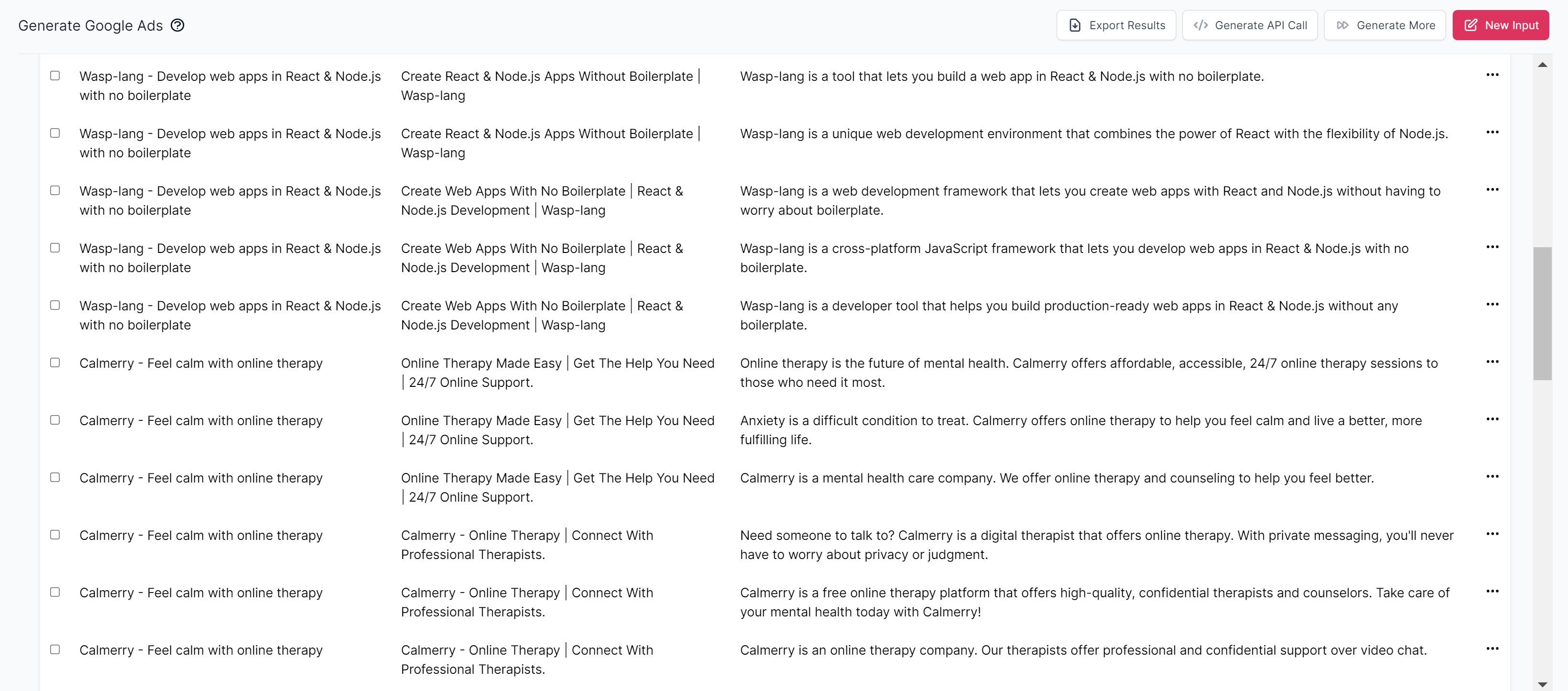 Let's generate Google Ads for multiple products at once.