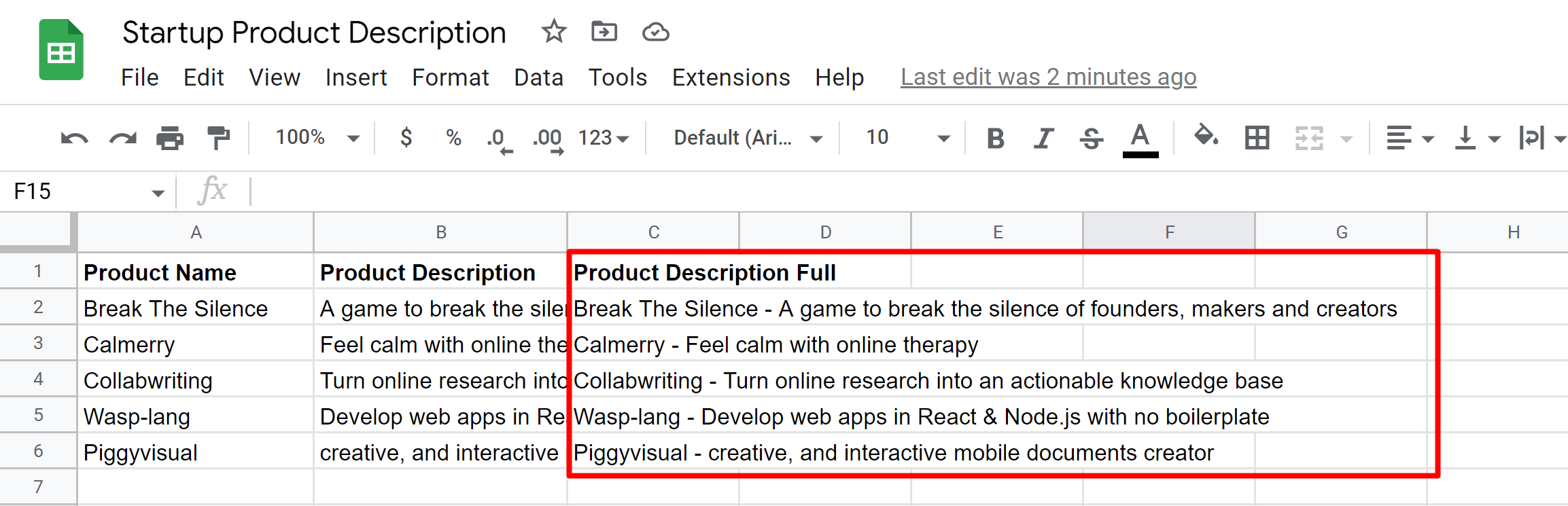 <figure><img src="https://3372553292-files.gitbook.io/~/files/v0/b/gitbook-x-prod.appspot.com/o/spaces%2FwSmFzVcnCrIF1wbU8Chb%2Fuploads%2FdqdG8rEOZHscOn1ot87l%2FUntitled%2040.png?alt=media&#x26;token=0e8bf318-a21a-435c-a3ed-e7b0819c11ca" alt=""><figcaption><p>Formatting products data from Producthunt</p></figcaption></figure>
